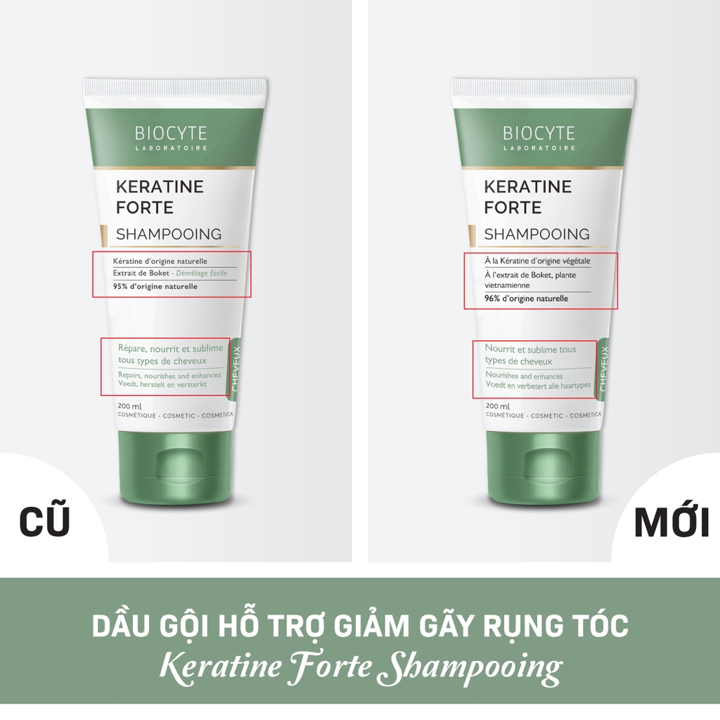 Combo 2 B12 Dầu gội hỗ trợ giảm gãy rụng tóc Keratine Forte Shampooing - Biocyte