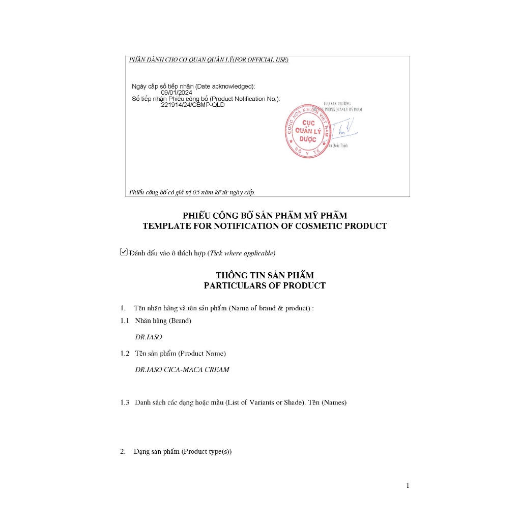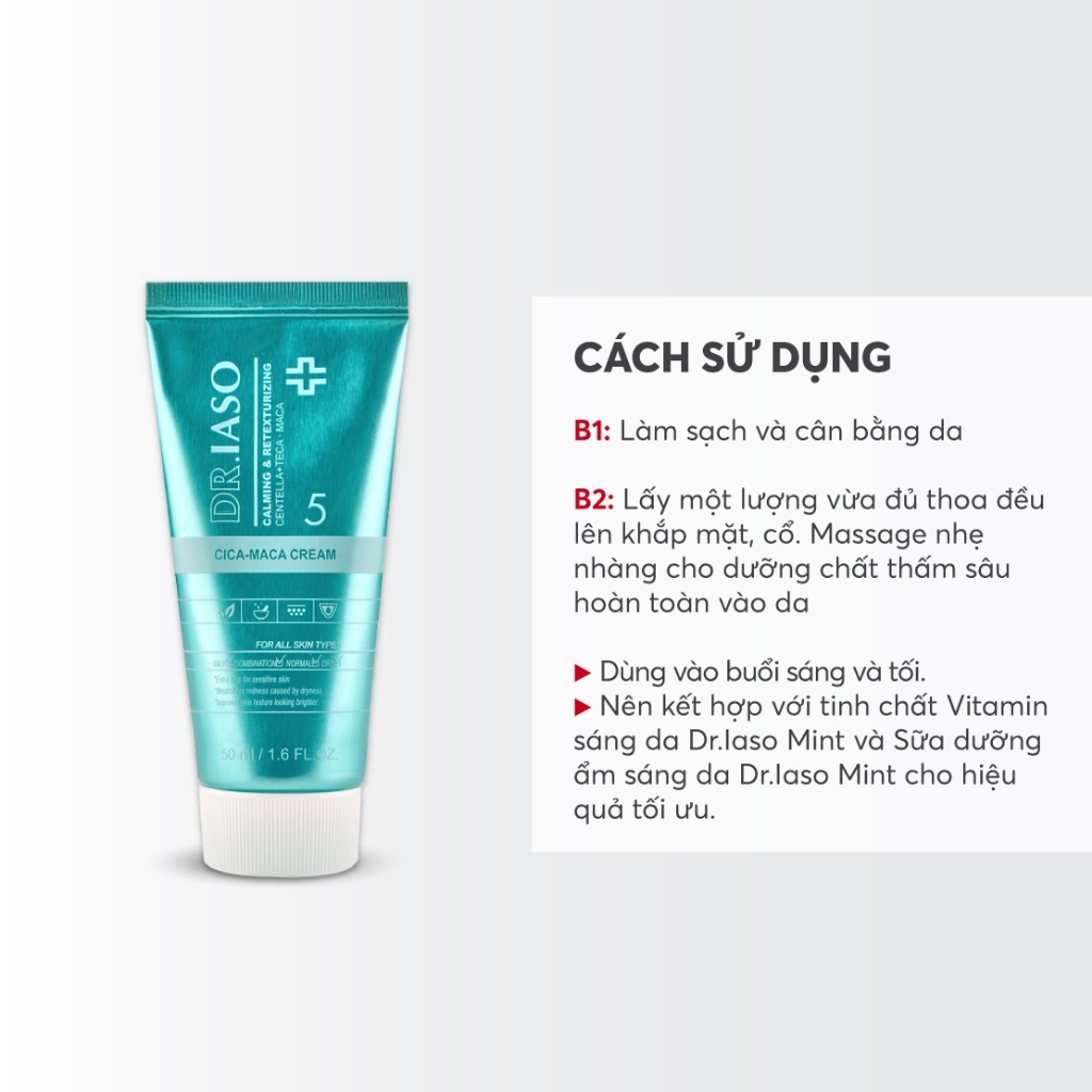 Combo 2 D34 Kem dưỡng ẩm cho da nhạy cảm Cica Maca Cream - Dr IASO