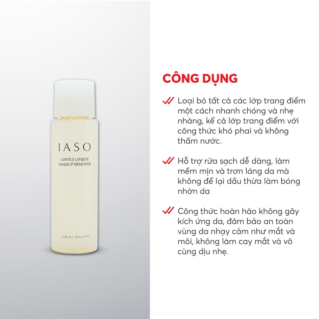I42 Nước tẩy trang mắt và môi Gentle Lip & Eye Make Up Remover - IASO