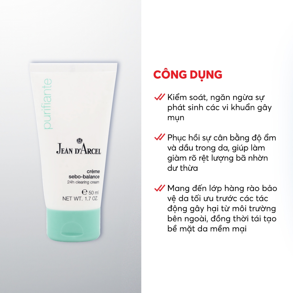 J10 Kem dưỡng 24h giúp giảm dầu, hỗ trợ ngăn ngừa mụn Clearing Cream - Jean d'Arcel