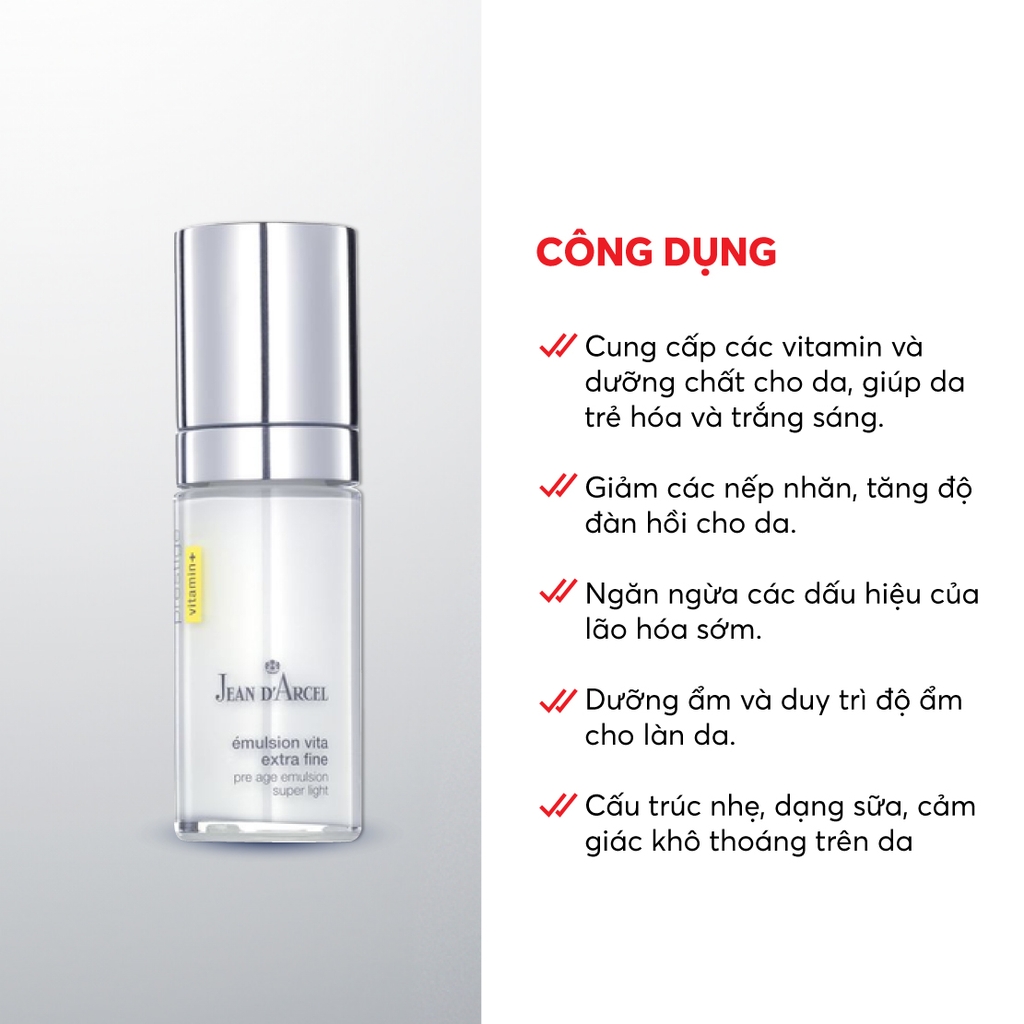 J75 Sữa dưỡng hỗ trợ sáng mịn da Émulsion Vita Extra Fine - Jean d'Arcel